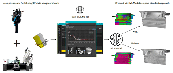 The impact this can have on the manufacturing operation for Safran is significant. For example, the reduction in scanning methods can streamline the workflow, potentially eliminating the need for additional reference data steps. This simplification through the improvement of CT measurement accuracy drives efficiency by enabling them to rely solely on data acquired from a single source, reducing production timelines and increasing productivity.