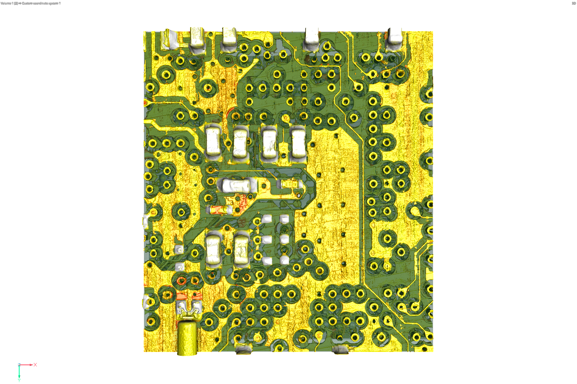 Accurate and, above all, consistent labeling of the training datasets is crucial. “There is no limit to the number of blocks we can feed into the system,” Fuchs adds. “But the larger the amount of data available to the deep neural network, the more accurate the Deep Segmentation results — and the faster the analysis process will ultimately run.” In this way, the team trained the VGTRAINER software with the characteristics of the circuit boards, creating a comprehensive foundation for the rapid evaluation of new CT scans of other circuit boards in the associated software, VGSTUDIO MAX.