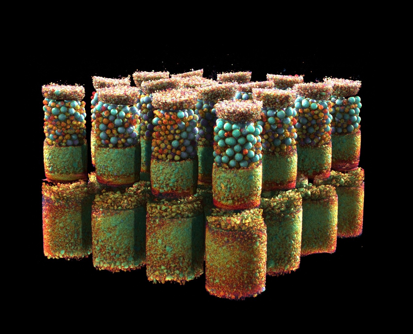 Foam/powder analyses allow us to segment a network of connected powder grains into separate components that can be visualized and analyzed more carefully. It is perfect for densely packed objects, such as powders and pellets—"stars"—in a firecracker.