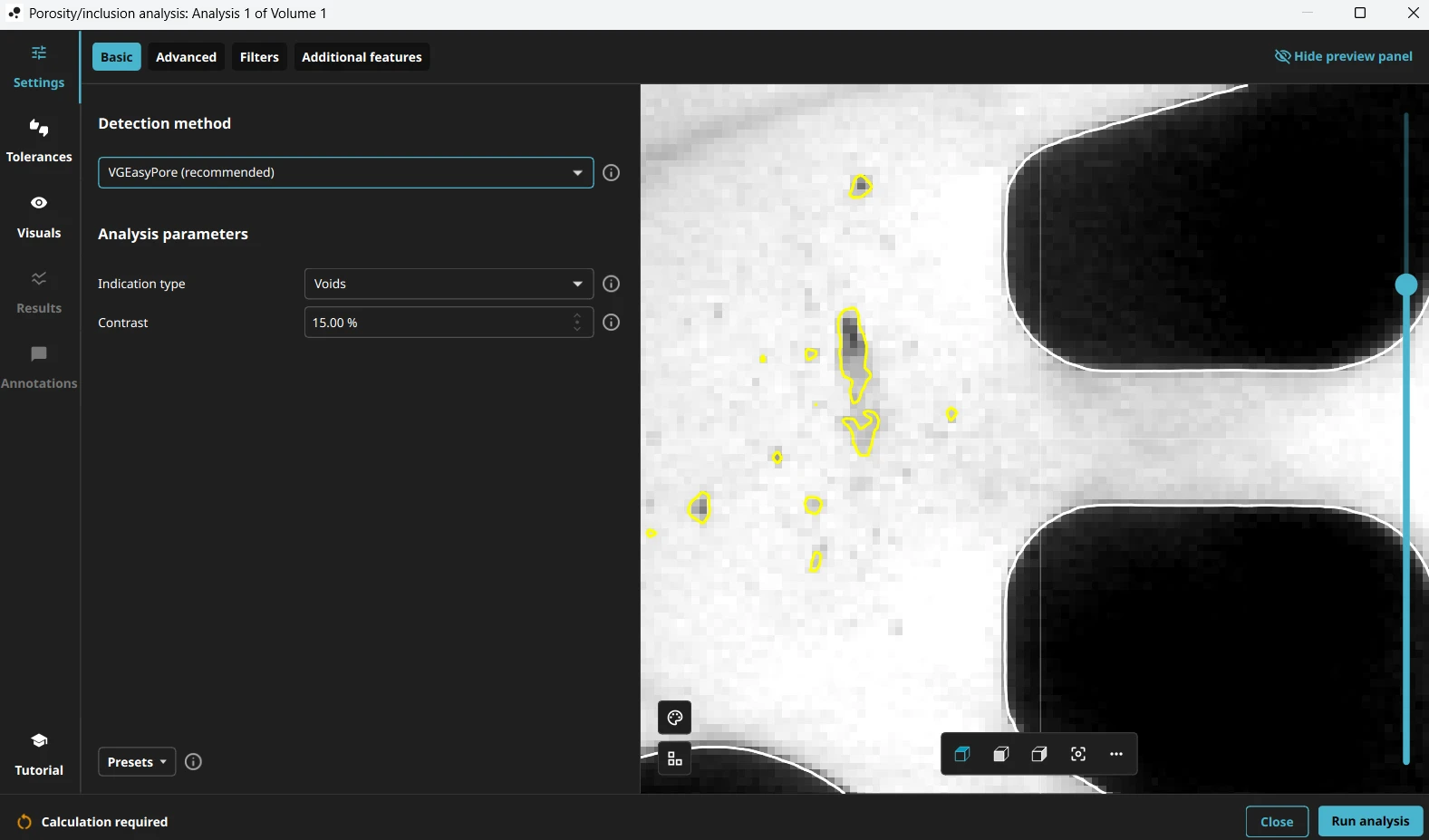 Porosity/inclusion analysis tutorial